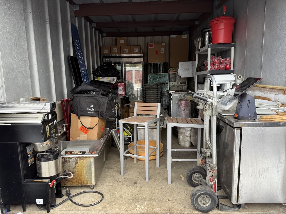 Contents of a 10' x 20' storage unit being sold by the storage unit owner. This storage unit contains Contents of closed down restaurant/cafe: includes Bunn coffee maker, stainless steel sinks, del...