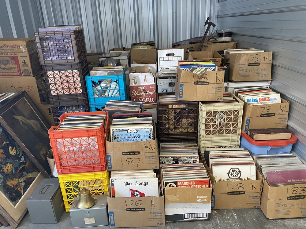 Contents of two Climate Controlled Storage Units being sold by the storage units owner. Contents include: LP Records, Antiques, Comics, Cigarette Cards, Jewelry, Military, Coins, Stamps, Knives plu...