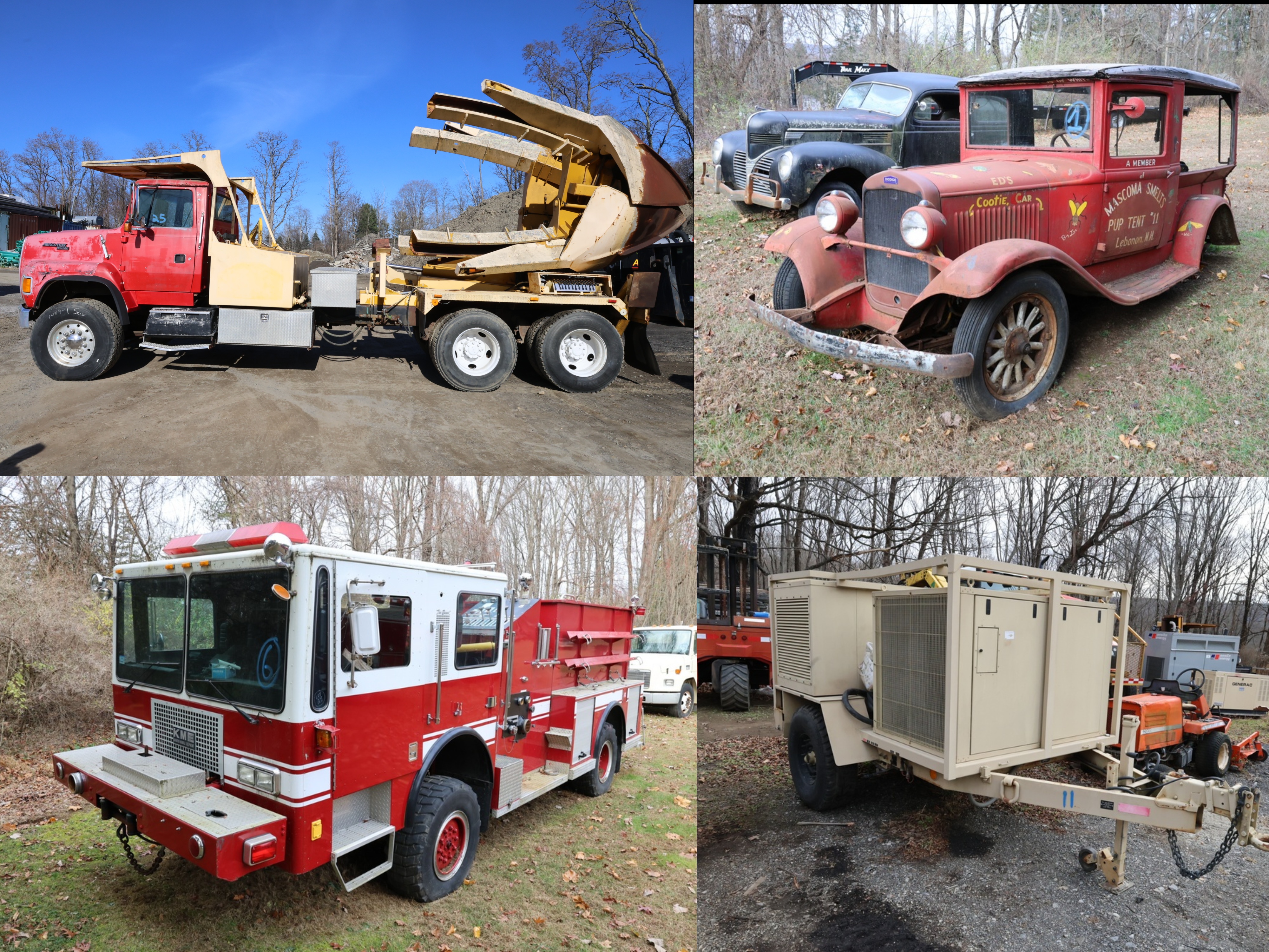 Items include 2022 Chevrolet Silverado 6500HD crew-cab flatbed truck; 2011 Ford F-550 Super Duty flatbed dump truck & 2003 Rolls Rite 35' gooseneck equipment trailer. Items are located in Rhinebeck...