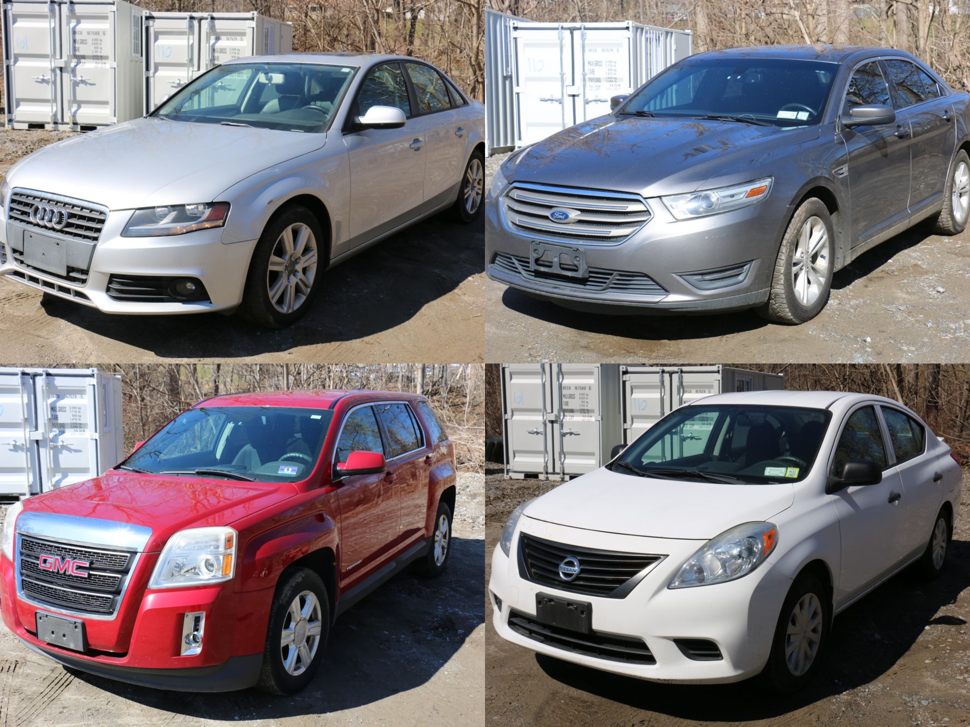 Vehicles include 2010 Audi A4 AWD; 2014 Nissan Versa Sedan FWD; 2015 GMC Terrain AWD & 2013 Ford Taurus AWD. Items are located in Pleasant Valley, NY.