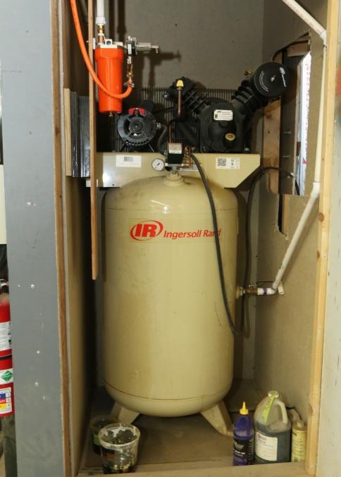 Ingersoll Rand model 2340 serial NAR10061651 industrial air compressor setup measuring with a baffle box to mitigate noise of the compressor running. 55"X"50x127"t. Buyer is responsible for the proper and safe removal to the first disconnect including bringing the proper tools, help and capping all electrical connections. Pickup can be completed on both days.
