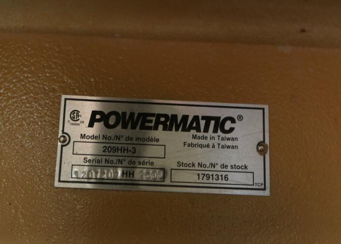 Powermatic model 209HH-3 serial number 1207209HH2599 18" planer with flex tube for central vac system. Measures approx 56"x39"x45"t. Buyer is responsible for the proper and safe removal to the first disconnect including bringing the proper tools, help and capping all electrical connections. Pickup can be completed on both days.