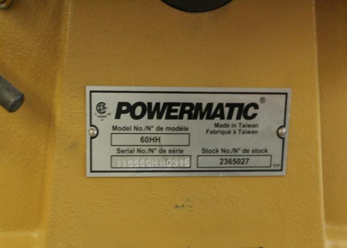 Powermatic model 60HH serial 110560HH0315 8" jointer. Measures approx 73"x24"x47"t. Buyer is responsible for the proper and safe removal to the first disconnect including bringing the proper tools, and help. Pickup can be completed on both days.