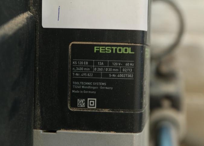 Festool model KS120 EB mitering 10" radial arm saw. Measures approx 24"x32"x26"t. Pickup must be completed Thursday, September 8 by 3PM.
