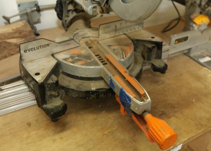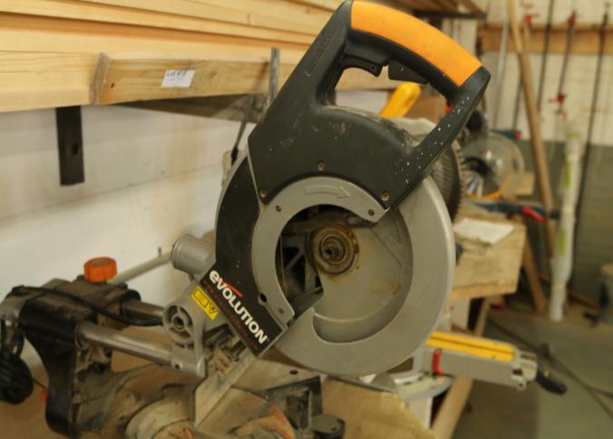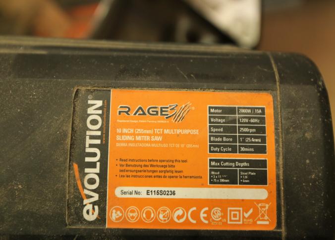 Evolution Rage 3 TCT multipurpose sliding 10" miter saw measuring approx 31"x20"x24"t. Pickup can be completed on both days.