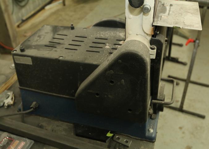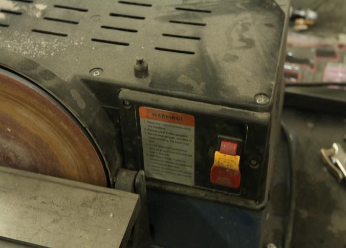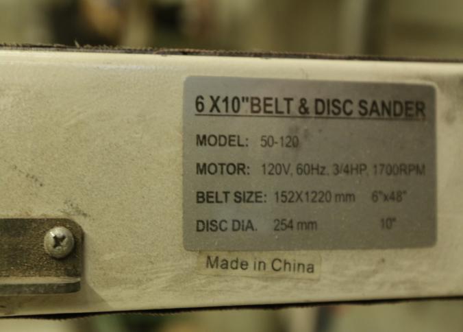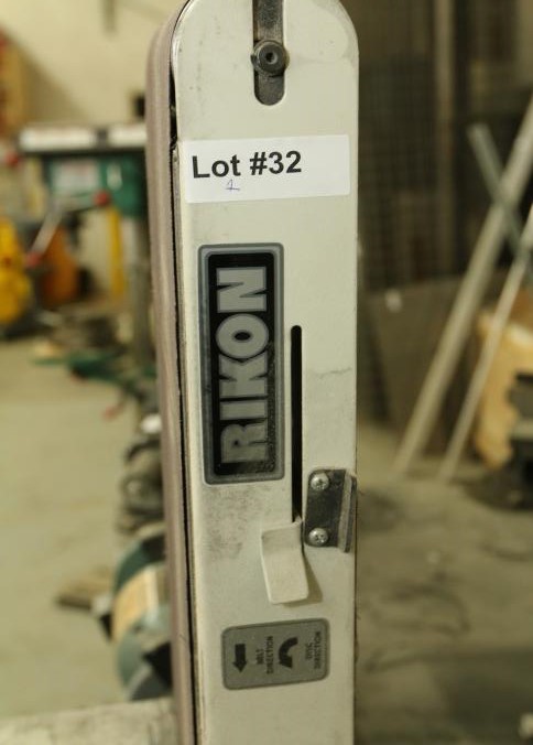 Rikon model 50-120 serial 13190Q0096 sanding station featuring a belt sander with an approx 16" deck and a 10" disk sander with miter gauge and deck. Measure approx 24"x23"x34"t. Pickup must be completed Thursday, September 8 by 3PM.