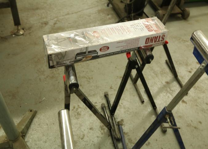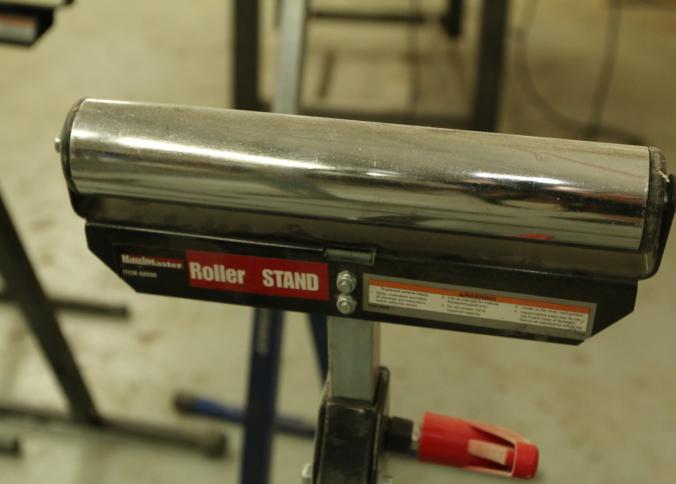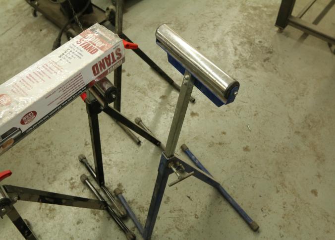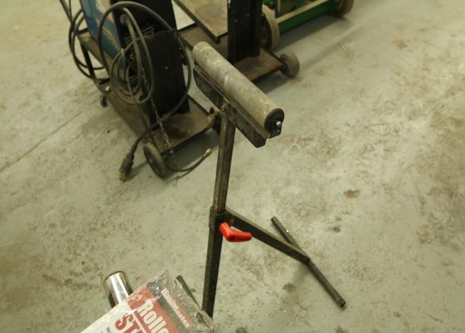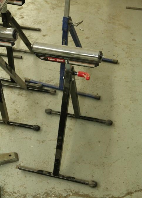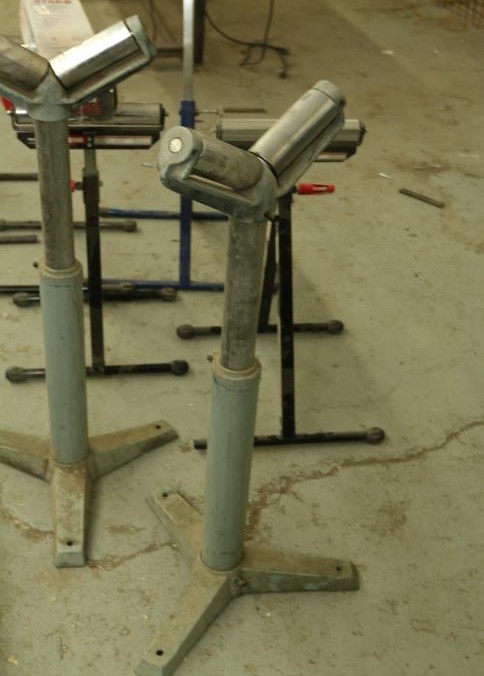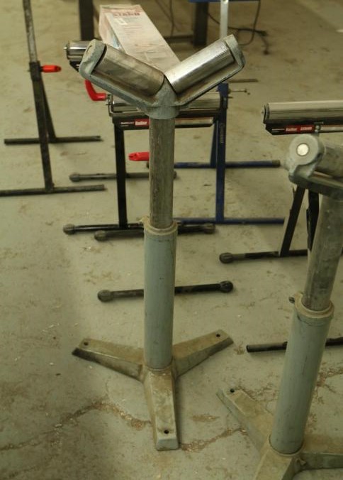Eight adjustable height roller stands, two of which are a V configuration. Largest measuring approx 19"x19"x41"t. Buyer must take all. Excluding other lots. Pickup can be completed on both days.
