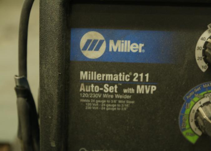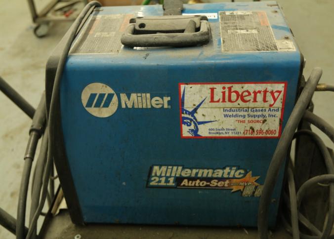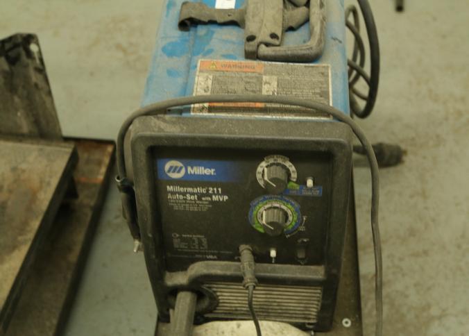 Millermatic model 211 Auto-set with MVP wire welder with cart. Serial number M30700046N. Measurements approx 46"x16"x29"t. Pickup can be completed on both days.