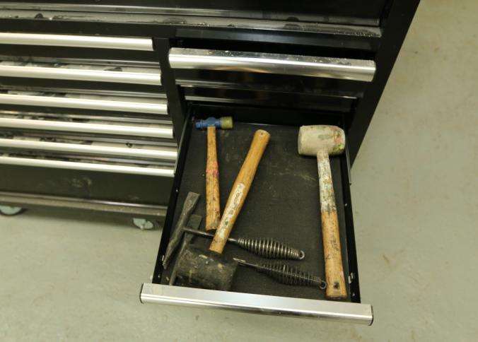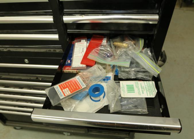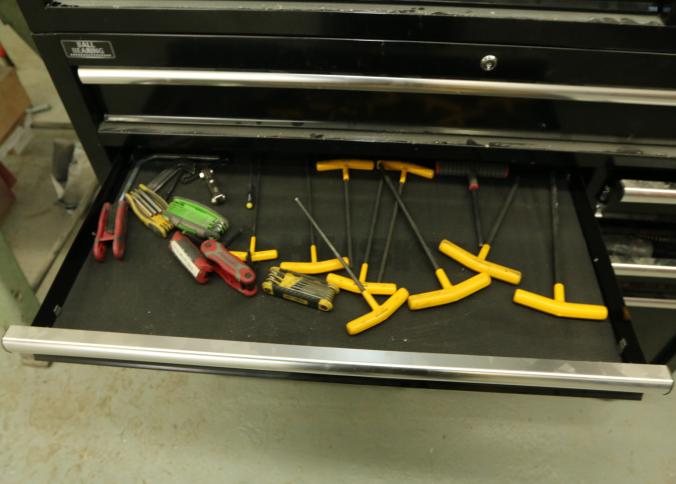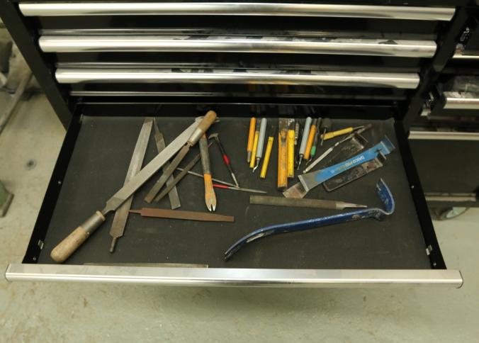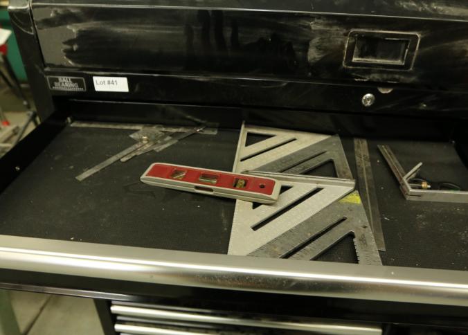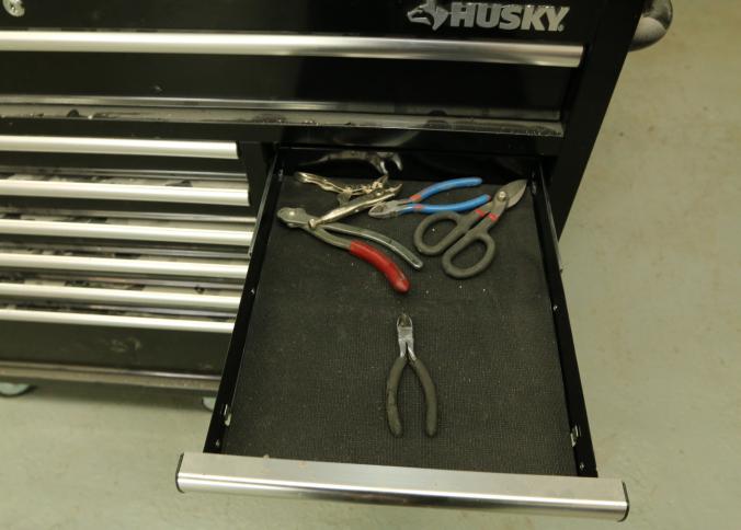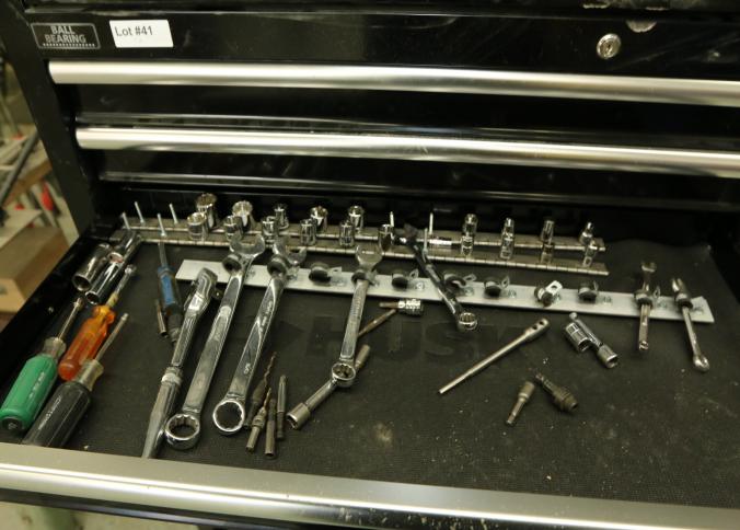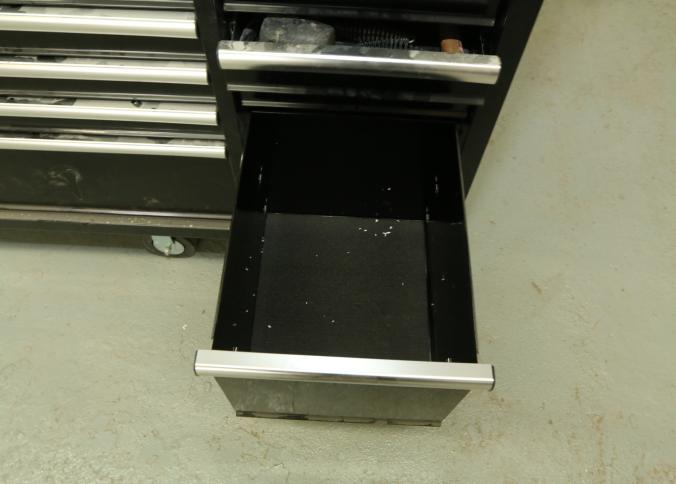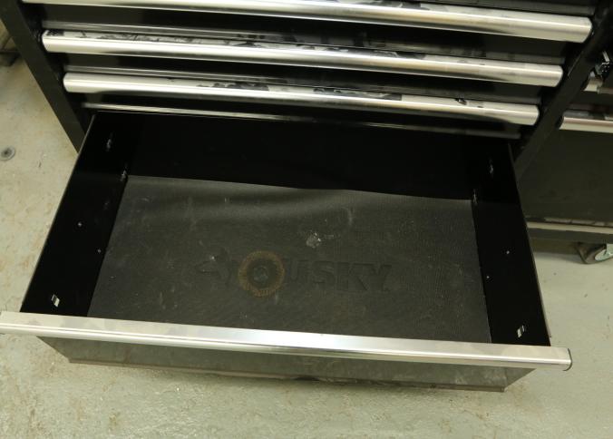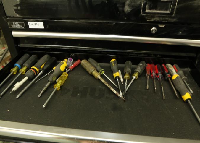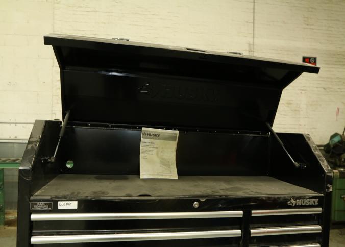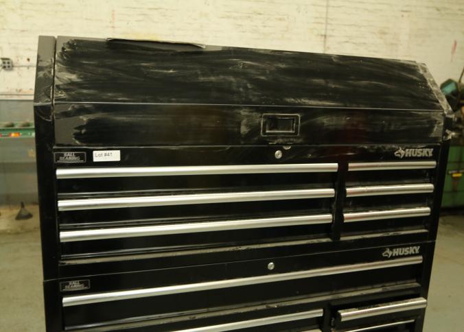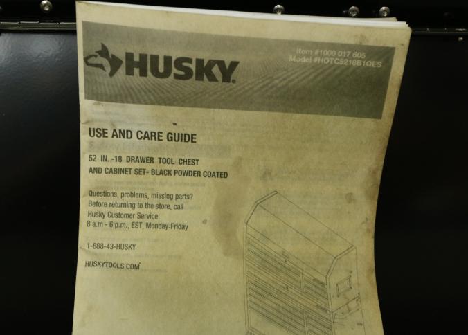 Husky 52" 18 drawer tool chest black powder coated with contents including combination wrenches, screw drivers, speed squares, torpedo level, hex wrenches, files, flatbar, etc. See pictures for details. Chest measures approx 18"x56"x65"t. Buyer must take all. Pickup can be completed on both days.