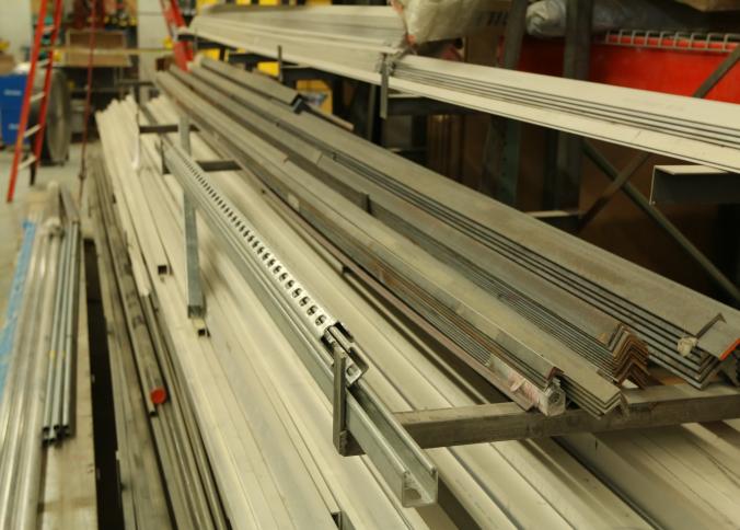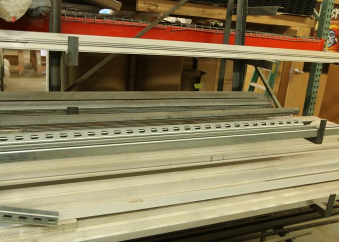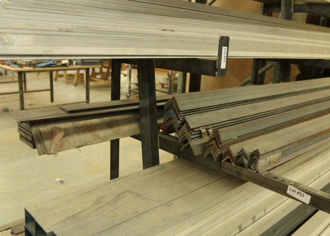 Steel angle stock in assorted sizes ranging from approx 3/4"-2.5" and approx 1/8"-1/4" thick. Also includes steel flat stock behind angle stock which measures approx 5"x1/4". Longest piece measures approx 20'. Buyer must take all. Excluding all stock not on the same shelf. Pickup must be completed Thursday, September 8 by 3PM.