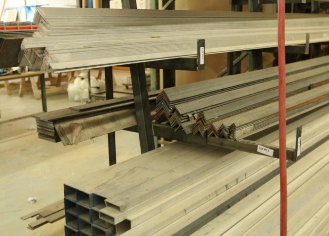 Steel angle stock construction seven rack, racking system for holding and organizing metal stock. Measures approx 20feetx52"x9feet tall. Excludes all stock, and other lots. Pickup must be completed Friday, September 9 by 3PM.