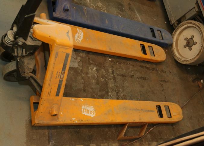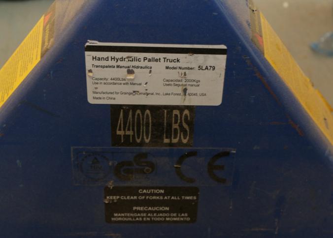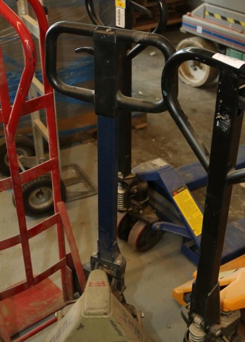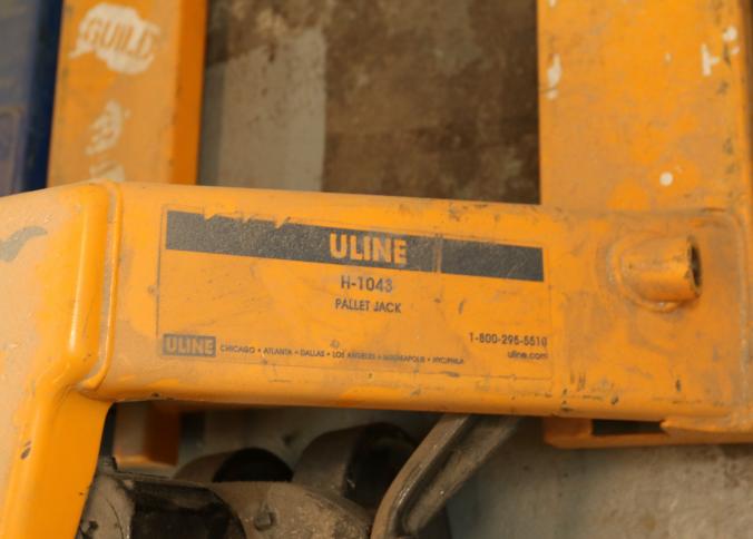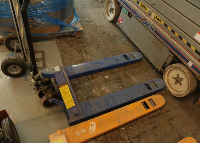 Three pallet jacks, Uline model H-1043, Wesco, Grainger model 5LA79. Pickup can be completed on both days.