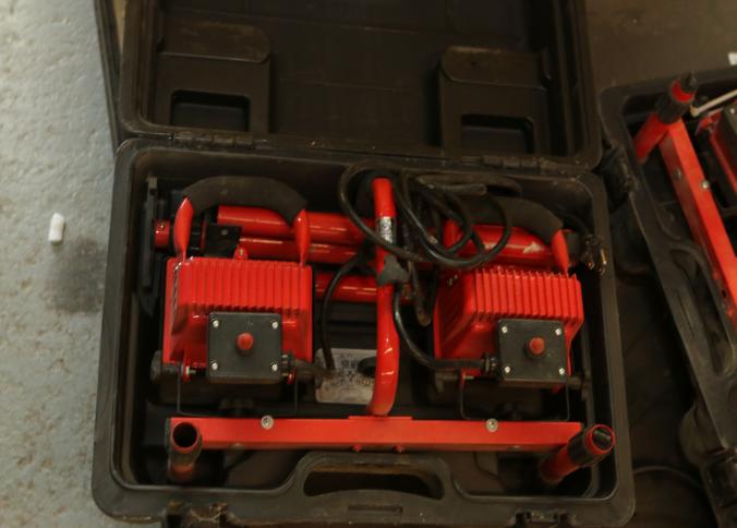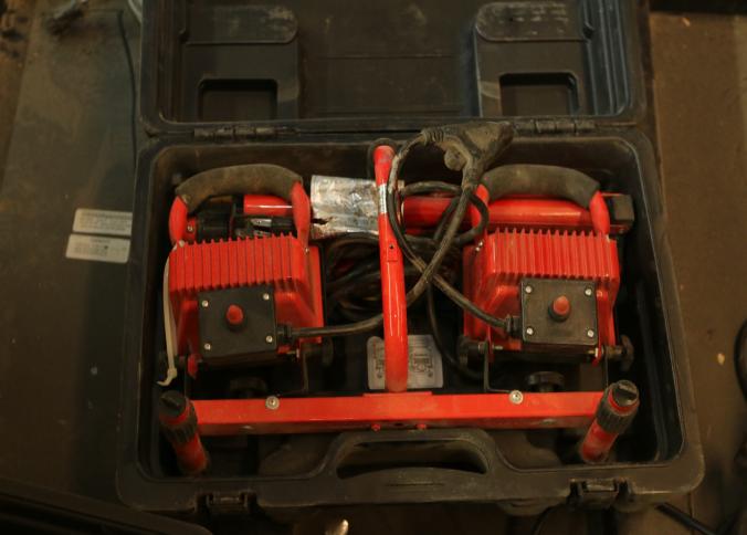 Two Commercial Electric 500watt output work lights with carrying case and tripod. Each case measures approx 9"x20"x14"t. Pickup can be completed on both days.