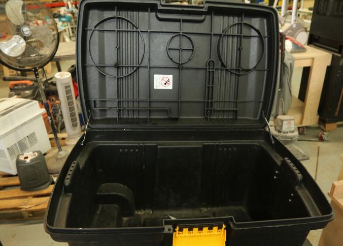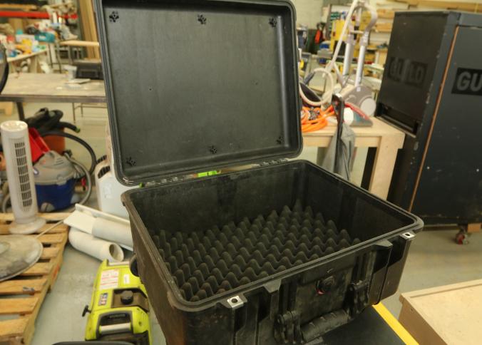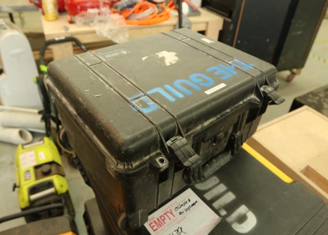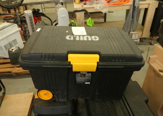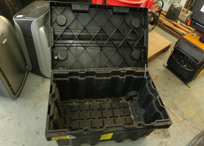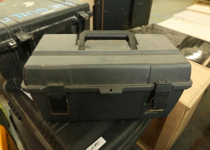 Job boxes, travel cases, tool box, and tool bag. Largest approx 24" x 38" x 19" tall. Five pieces total. Pickup can be completed on both days.