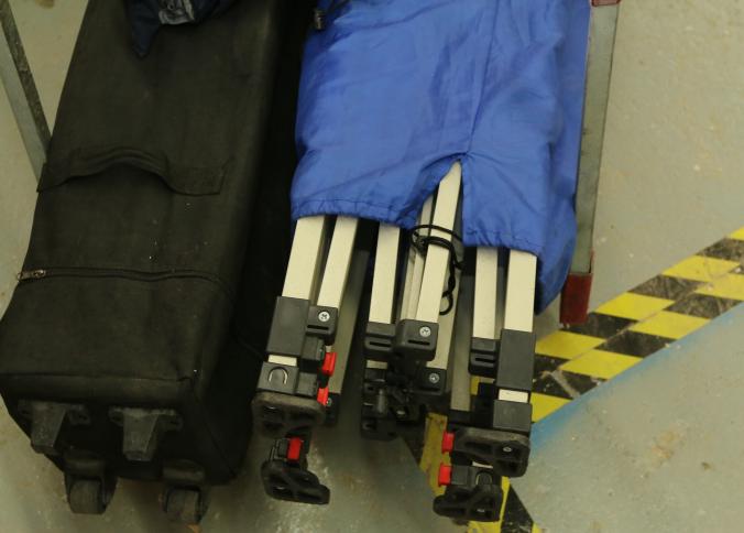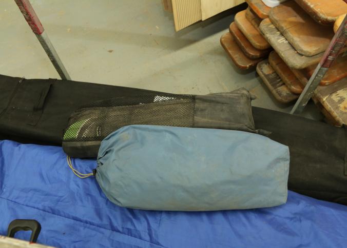 E-Z up instant shelter and unbranded pop up tent, Sierra designs sirus 2 tent, and rubber mat. Pickup can be completed on both days.