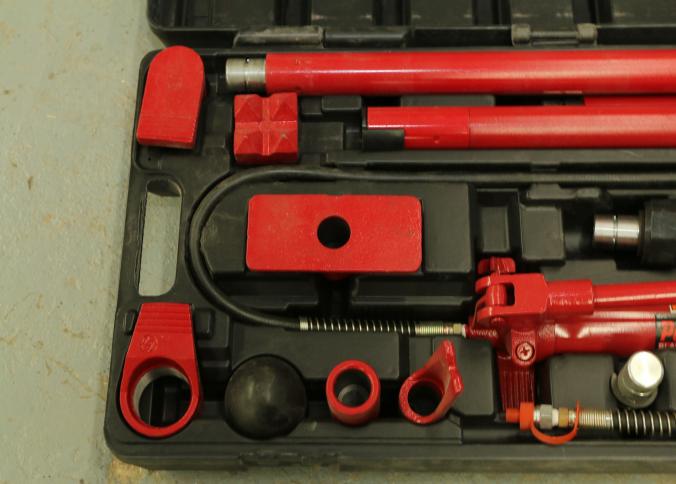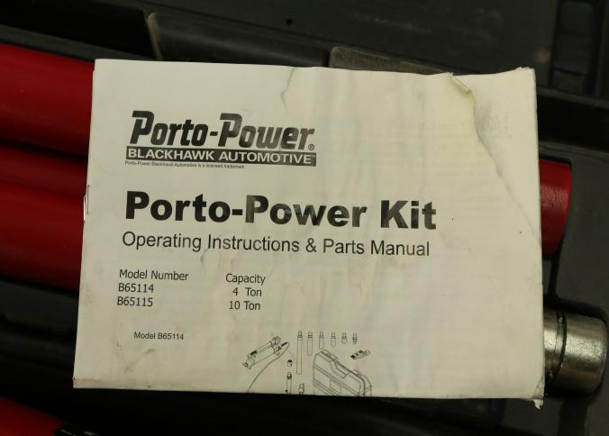 10 ton Blackhawk Automotive Porto-power hydraulic body repair in a rolling case. Model B65115. Pickup can be completed on both days.