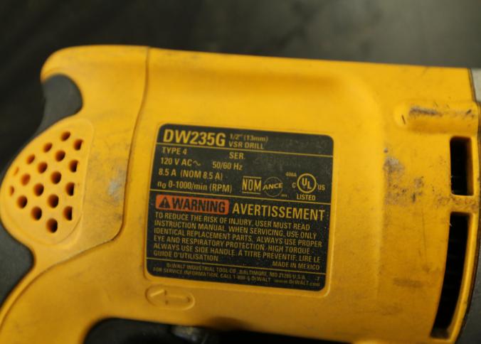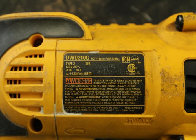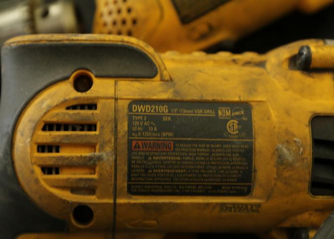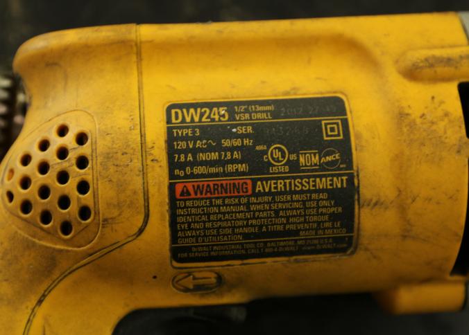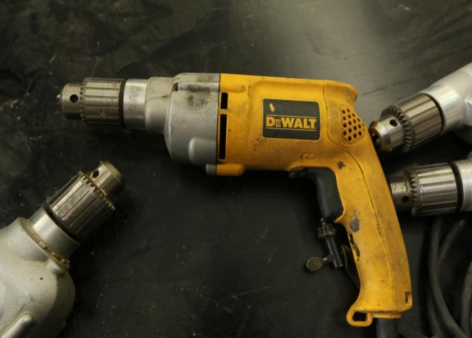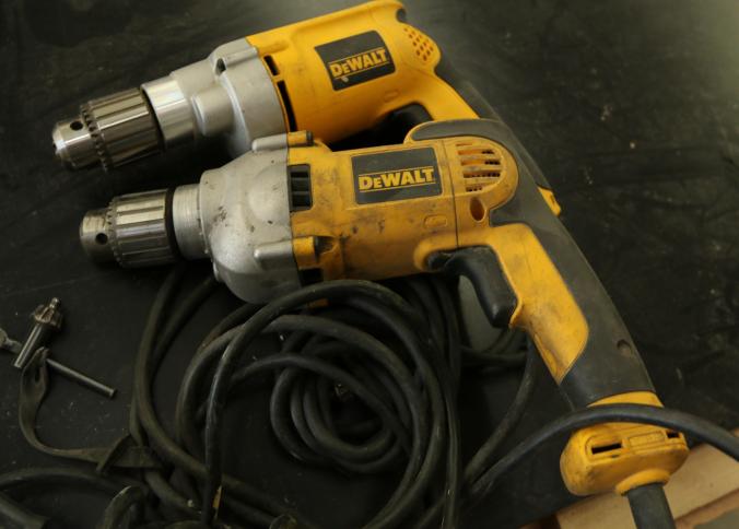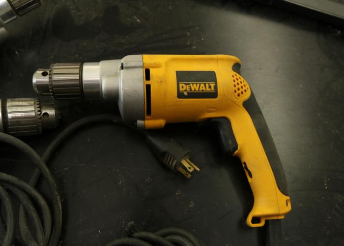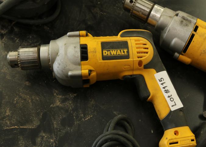 Five Dewalt corded drills including model DWD210G, DW245, DWD210G, DW235G, and the last illegible. Pickup can be completed on both days.