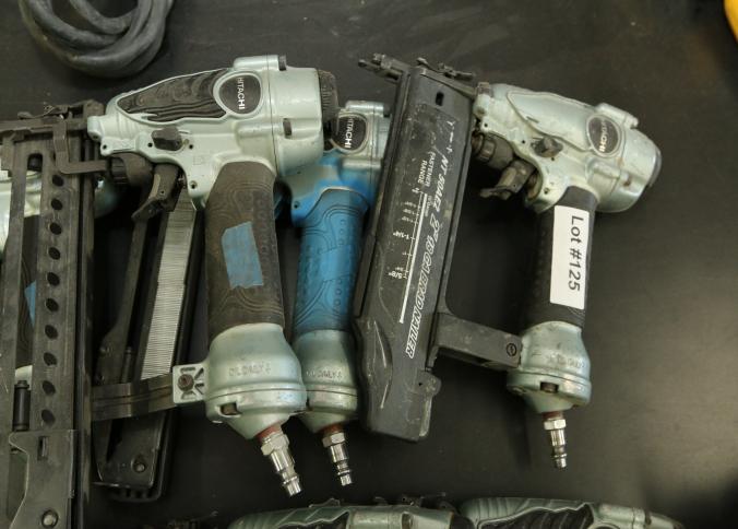 Four Hitachi model NT50AE2(S) 2" brad nailers, Four Hitachi N3804AB3 1.5" staplers. Pickup can be completed on both days.