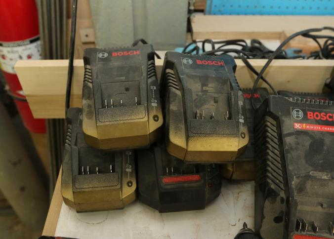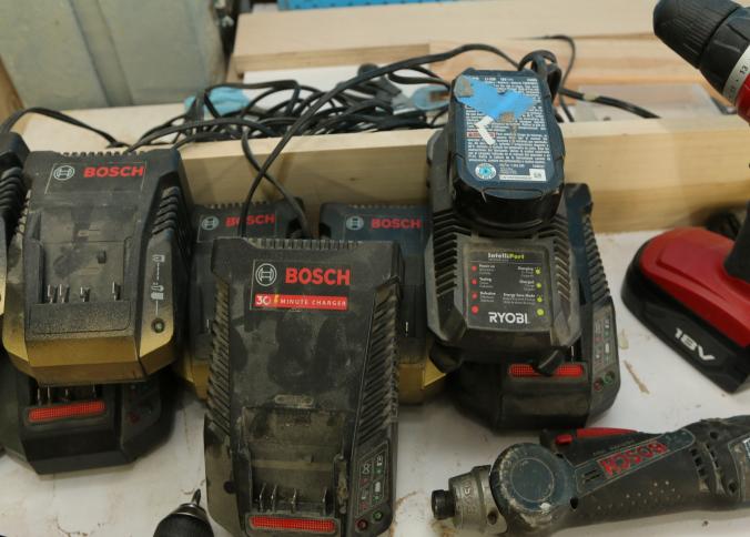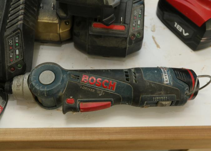 Skil model 2860 cordless drill, Ryobi model P271, Milwaukee model 2415-20 angle drill, Bosch I-driver, Eight Bosch battery chargers, a Ryobi battery charger and a Milwaukee battery charger. Pickup can be completed on both days.