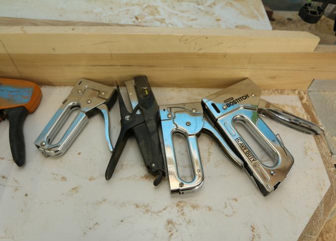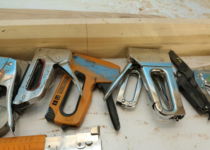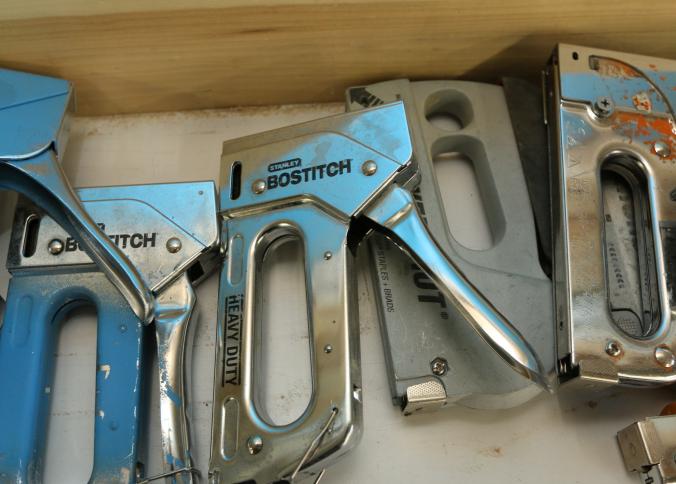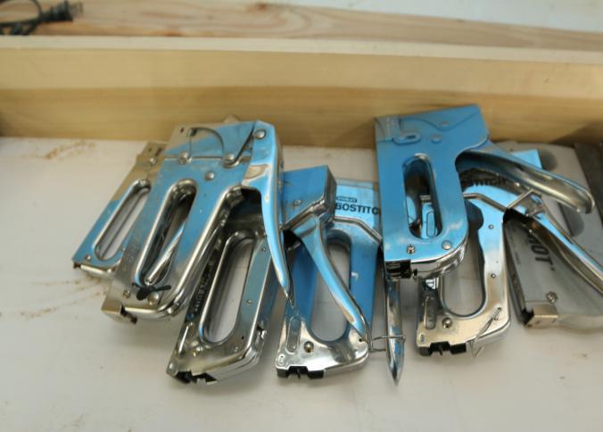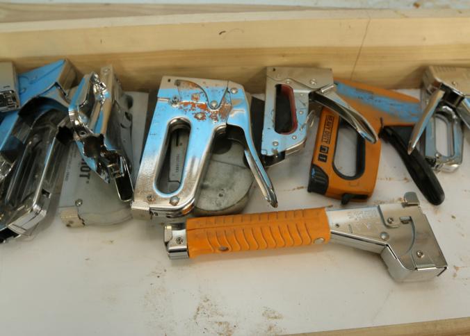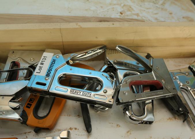 Assortment of construction staplers brand names include Stanley, Bostitch, Arrow, and PowerShot. Also included is one Arrow brand slap stapler. Pickup can be completed on both days.