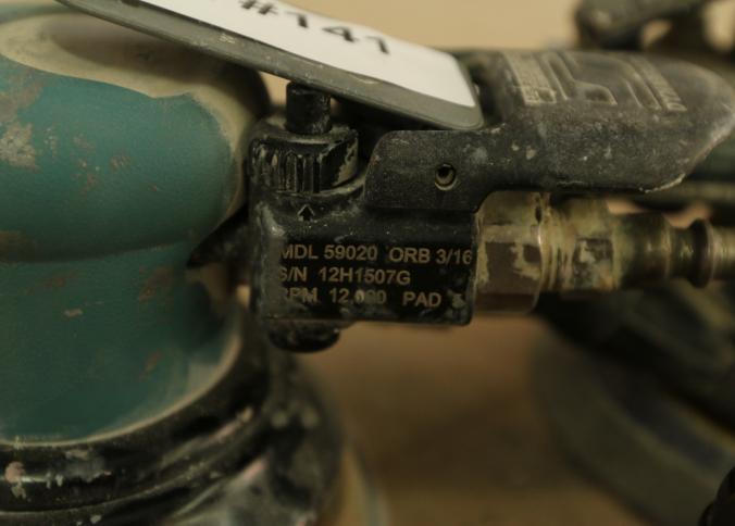 Two pneumatic orbital Palm sanders, Kobalt model AIR142, Dynabrade model 59020a and a Grip Rite model GRTMP16 Palm nailer. Pickup can be completed on both days.