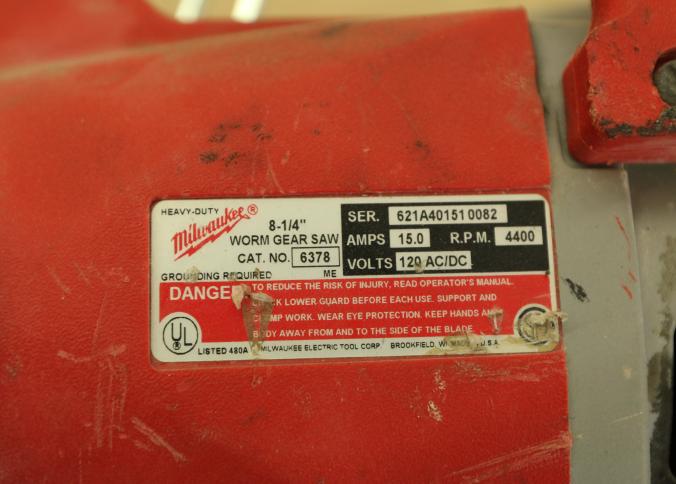 Milwaukee model 6378 worm drive 8.25" circular saw. Pickup can be completed on both days.