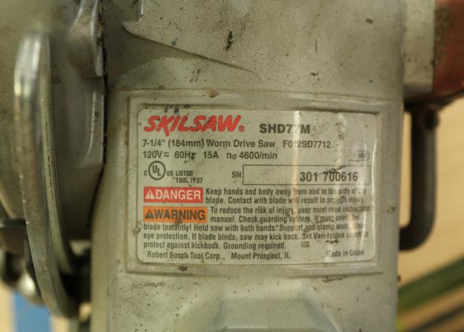 Skilsaw model SHD77M worm drive 7.25" circular saw. Pickup can be completed on both days.