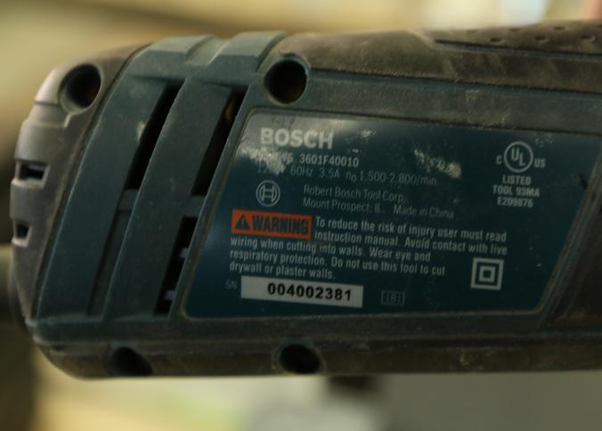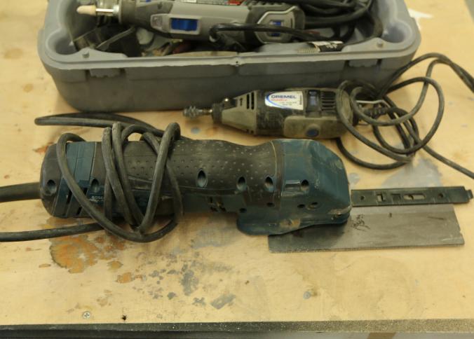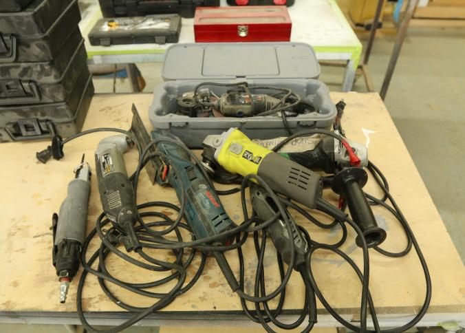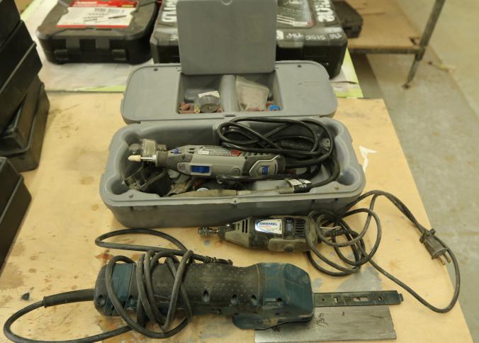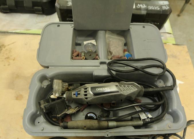 Dremel model 4200 with remote line attachment, sanders, shear, & saw attachment, and model 395, Rockwell modelR5102K sonicrafter vibrating saw, Bosch model 1640VS fine cut reciprocating saw, Hitachi model G12SR3 grinder, Ryobi model AG4031G grinder. Ingersoll Rand model 529 pneumatic reciprocating saw. Pickup can be completed on both days.