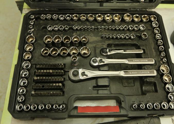 Complete wood bore set. Craftsman 230pc socket set incomplete, Husky 38piece socket set incomplete, Ultra-tough Ultra steel 54 piece set incomplete, Pickup can be completed on both days.