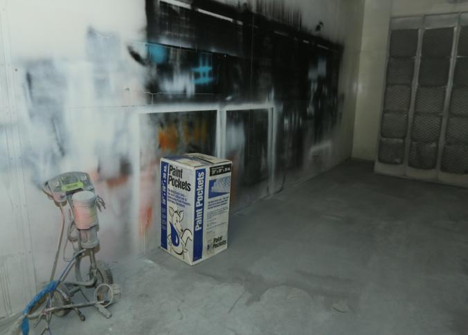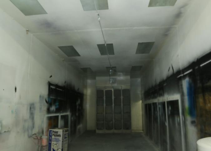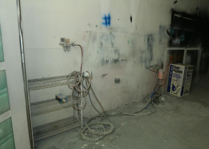 Very large paint booth approx 14' x 36' x 12' tall, with a rear entrance, and interior lighting. Excluding paint sprayer. Buyer must take all and is responsible for the proper and safe removal to the first disconnect including bringing all necessary tools, equipment and help. Pickup can be completed on both days.