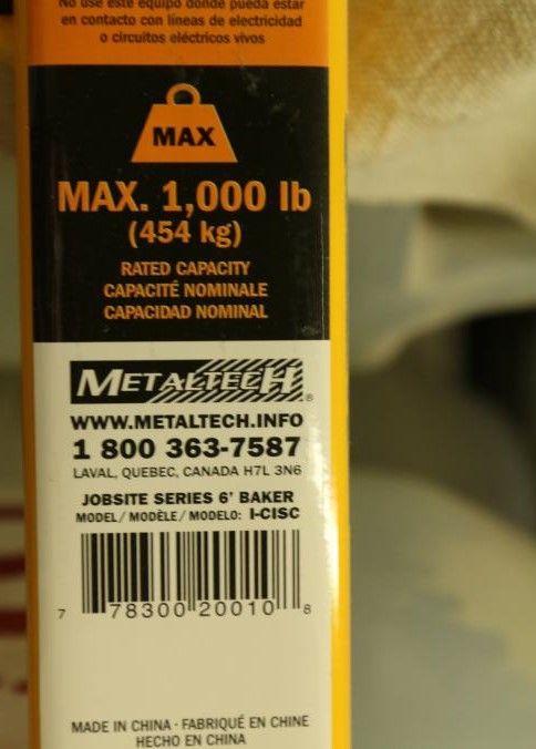 Baker scaffolding by Metal Tech with a 1000lb capacity. Pickup can be completed on both days.