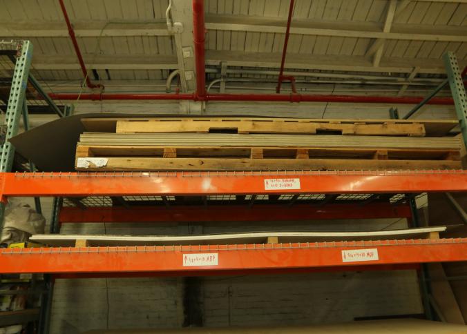 MDF board, plywood, brass sheet metal, steel stock, scrap, OSB, PVC foam board, etc. Buyer must take all. Excludes racking and other lots. Pickup must be completed on Thursday, September 8 by 3PM.