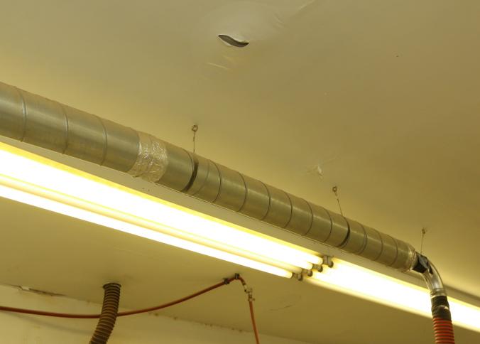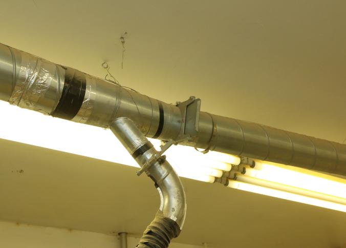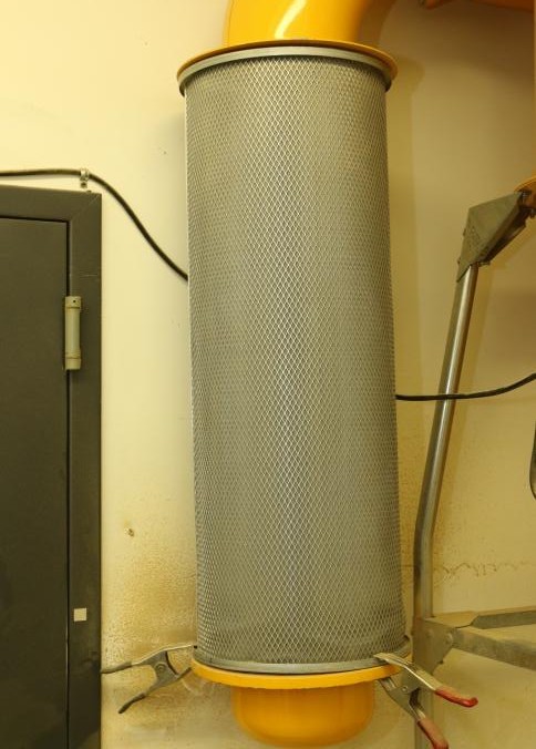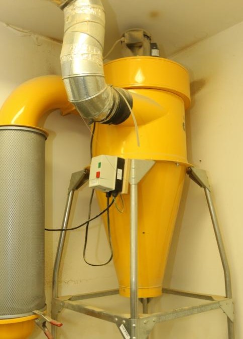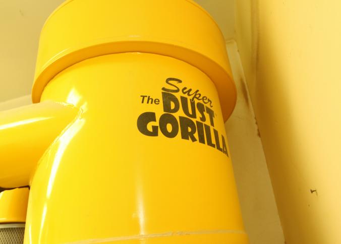 The super dust gorilla dust collector model MS1-12D 28" x 28" x 90" tall, with ridged piping up to the flanges going to each machine. Buyer must take all. Pickup can be completed on both days.