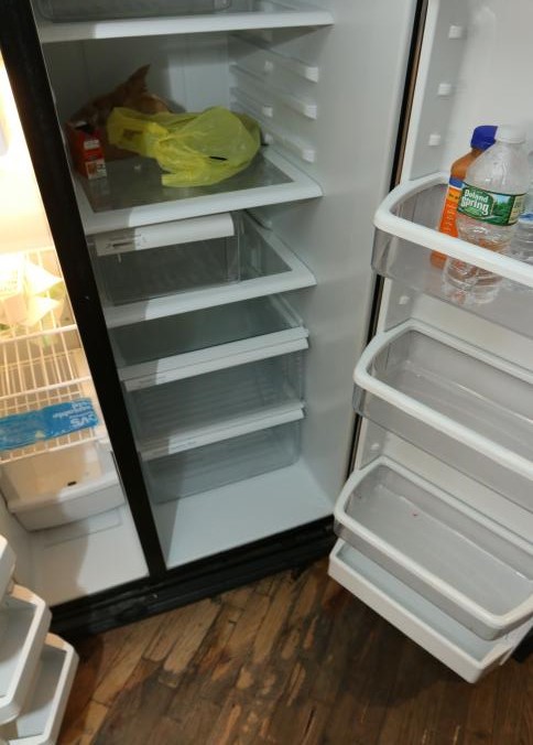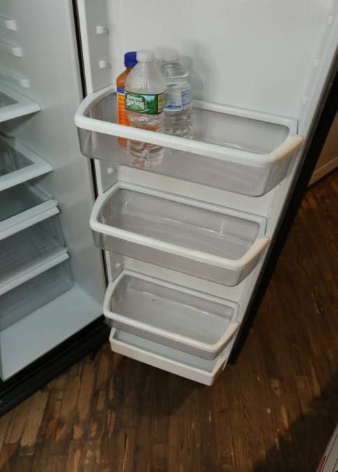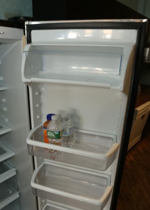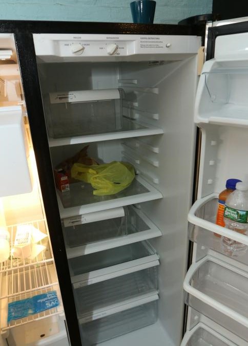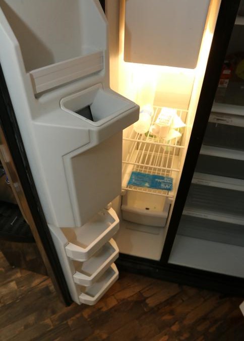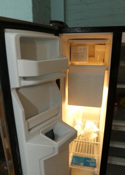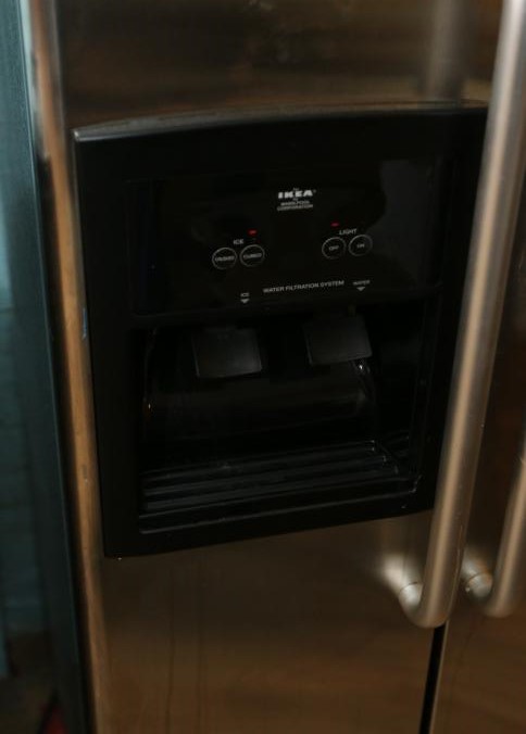 Stainless steel face Whirlpool standup refrigerator freezer combo model ID2HHEXTS01 serial HRW1628629 with external ice and water dispenser. Measures approx 33"x33"x67"t. Pickup must be completed on Thursday, September 8 by 3PM.