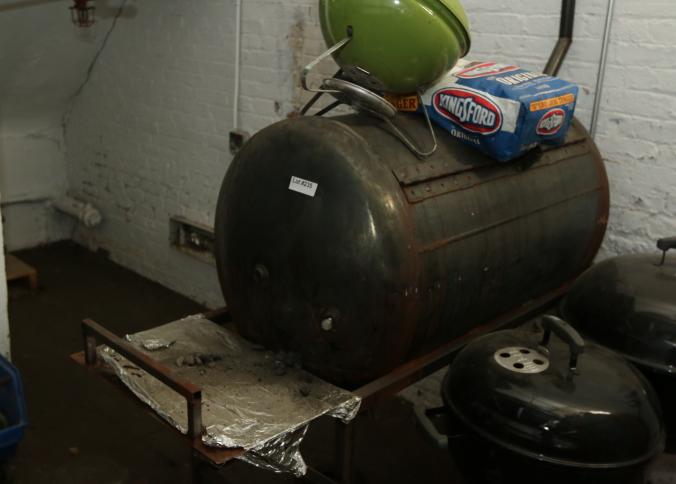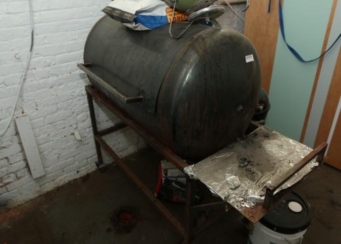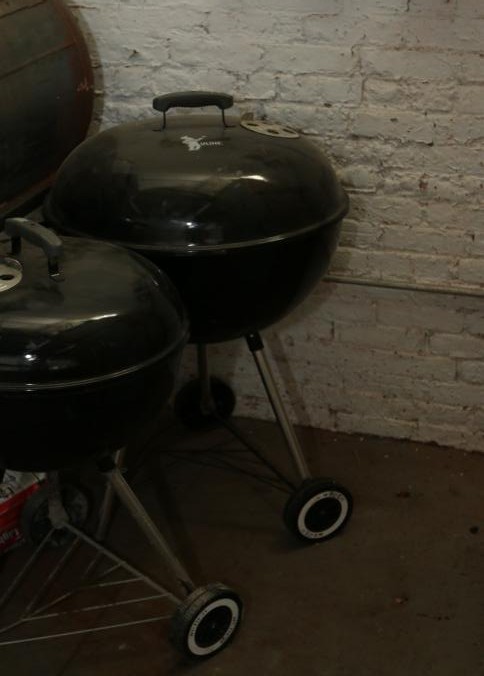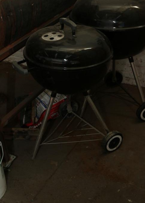 Oversized custom made charcoal grill 60" x 22 x 51 on a metal base, and three other standard charcoal grills with one bag of charcoal. Buyer must take all. Pickup can be completed on both days.
