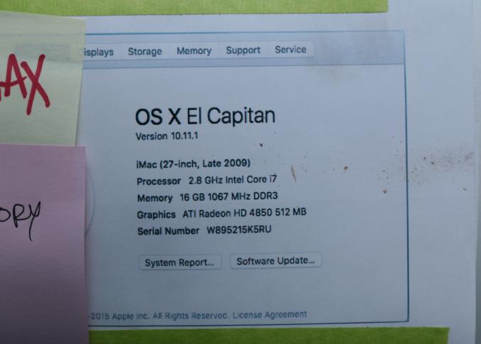 Apple iMac 27" computer with a 2.8 GHz I7 processor, 16 GB DDR3, and ATI Radeon HD 4850 512 MB graphics. Photos for reference only, exact condition may vary slightly. Pickup can be completed on both days.