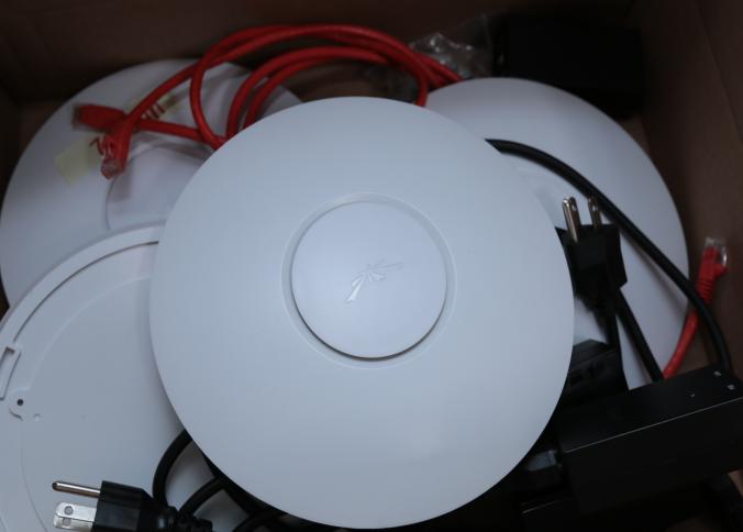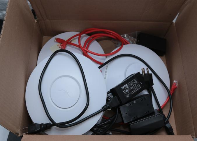 Wi-Fi components including Unifi AP AC Lite by Ubiquiti, UniFi AP Long Range, etc. Pickup can be completed on both days.