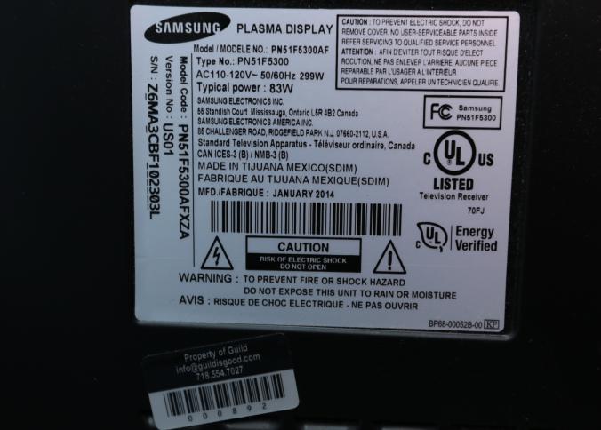 Samsung 50" plasma TV model PN51F5300AF. Pickup can be completed on both days.