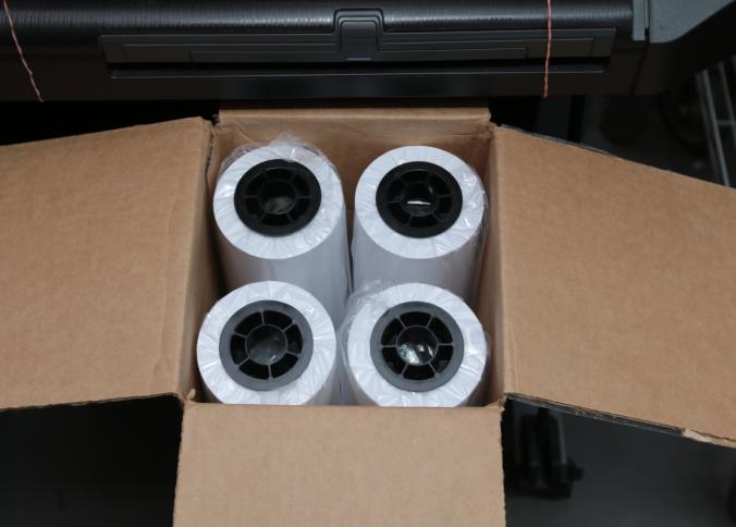 HP Designjet T520 24in (T520-24) e-printer with extra rolls of paper. Serial number CN51J6M096. Pickup can be completed on both days.