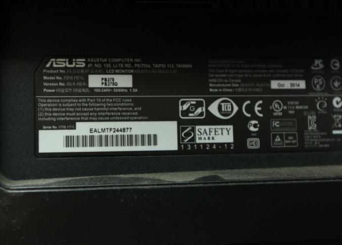 Asus PB278 27-inch LED monitor. Photos for reference only, exact condition may vary slightly. Pickup can be completed on both days.