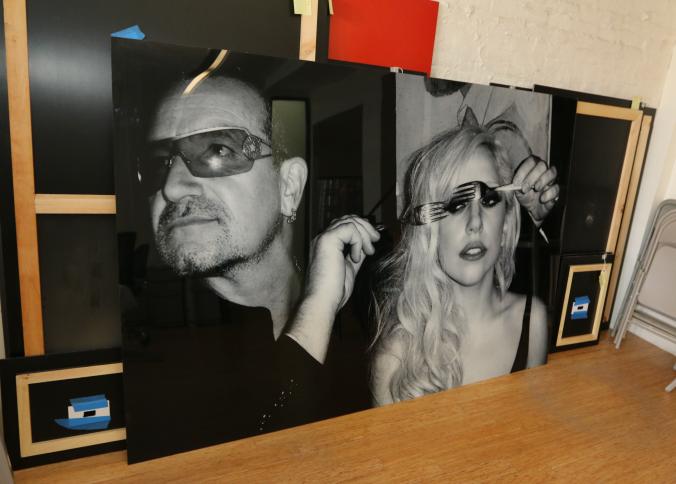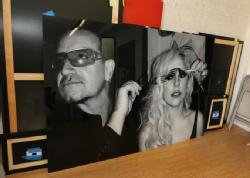 "Bono and Lady GaGa" piece measuring 96"x59" by Mick Rock. Pickup can be completed on both days.
