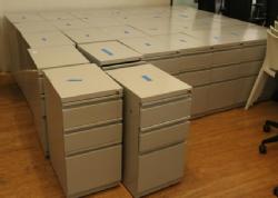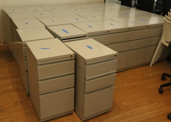 30ct three-drawer filing cabinets measuring approx 20"x15"x28"t each. Pickup can be completed on both days.