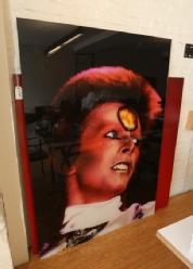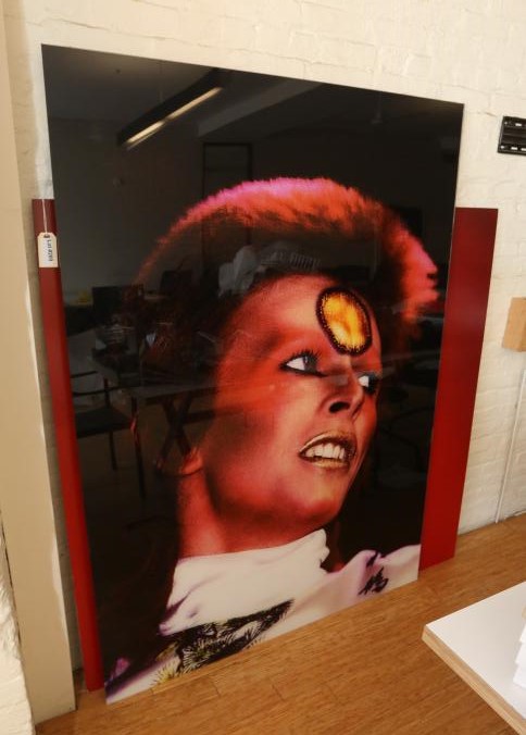 "Bowie Earls Court 1973" piece measuring approx 48"x72" by Mick Rock. Pickup can be completed on both days.