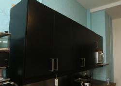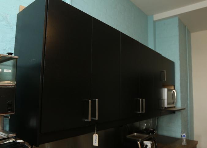 Two sets of black wall cabinets measuring approx 120"x48"x16", and stand up pantry measuring approx 24"x32"x85", base cabinet measuring approx 97"x31"x35"t, base cabinet measuring approx 16"x31"x35"t. Buyer must bring tools and disconnect water and power in a safe and appropriate manner capping all disconnects. Small black storage cabinet also included measuring 48"x24"x39"t. Buyer must take all. Buyer must bring tools to properly disconnect water lines and power in a fashion that is safe as well as cap as disconnects. Pickup must be completed on Friday, September 9 by 3PM.
