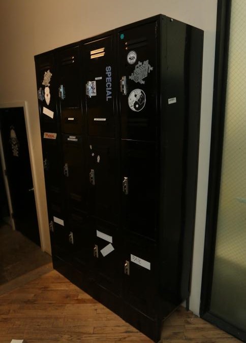 Two sets of 12 black lockers measuring approx 48"x17"x78"t, two large storage cabinets with sliding face access measuring approx 72"x32"x29"t and also two large closets sitting on top measuring approx 48"x28"x82"t. Buyer must take all, and is responsible for the proper and safe removal including bringing all necessary tools, equipment and help. Pickup can be completed on both days.