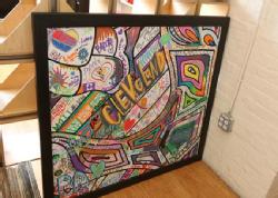 "Lou/Mick/David" piece measuring approx 59"x59" by Mick Rock. Pickup can be completed on both days.
