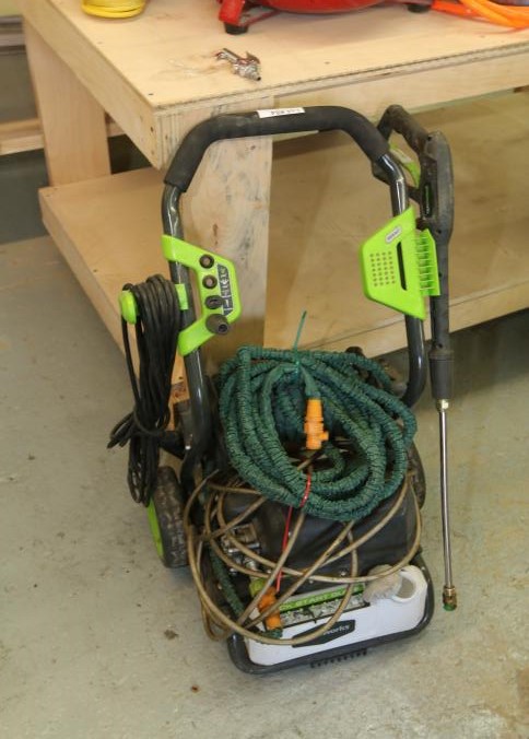 Greenworks model 2000 pressure washer with hose. Pickup can be completed on both days.
