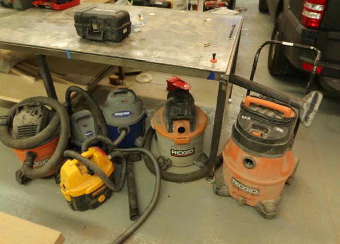 Shop vacs including Ridgid 6.5 gallon, 2X Ridgid 6 gallon, one Dewalt DC 500, two Shop Vac one 6 gallon, one 2.5 gallon. Pickup can be completed on both days.
