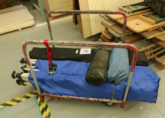7 four wheel flat dollies, and 14 46" wide saw horses. Buyer must take all. Pickup must be completed on Thursday, September 8 by 3PM.