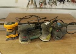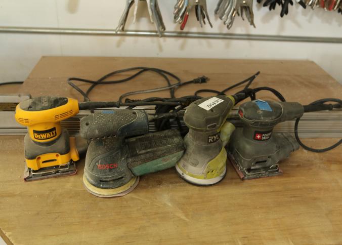 Four Palm sanders, DeWalt model D26441, Bosch model ROS20VS, Ryobi model RS290G, Porter Cable model 342. Pickup can be completed on both days.